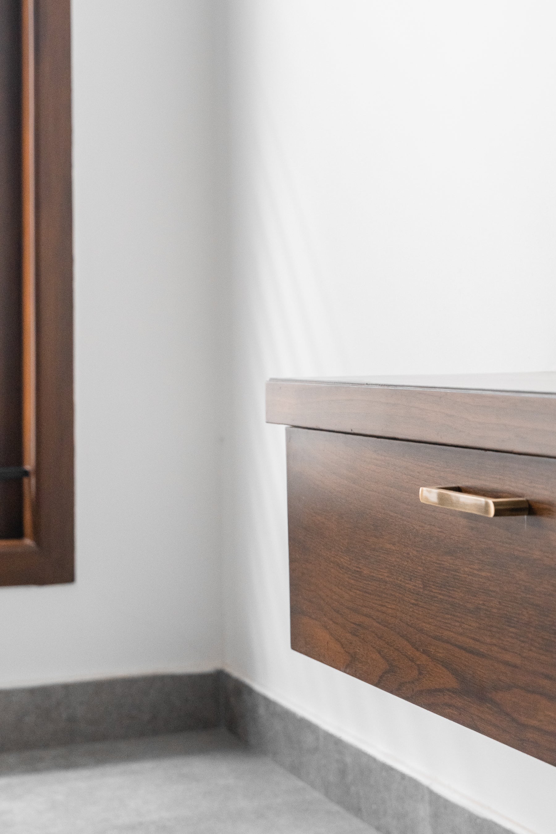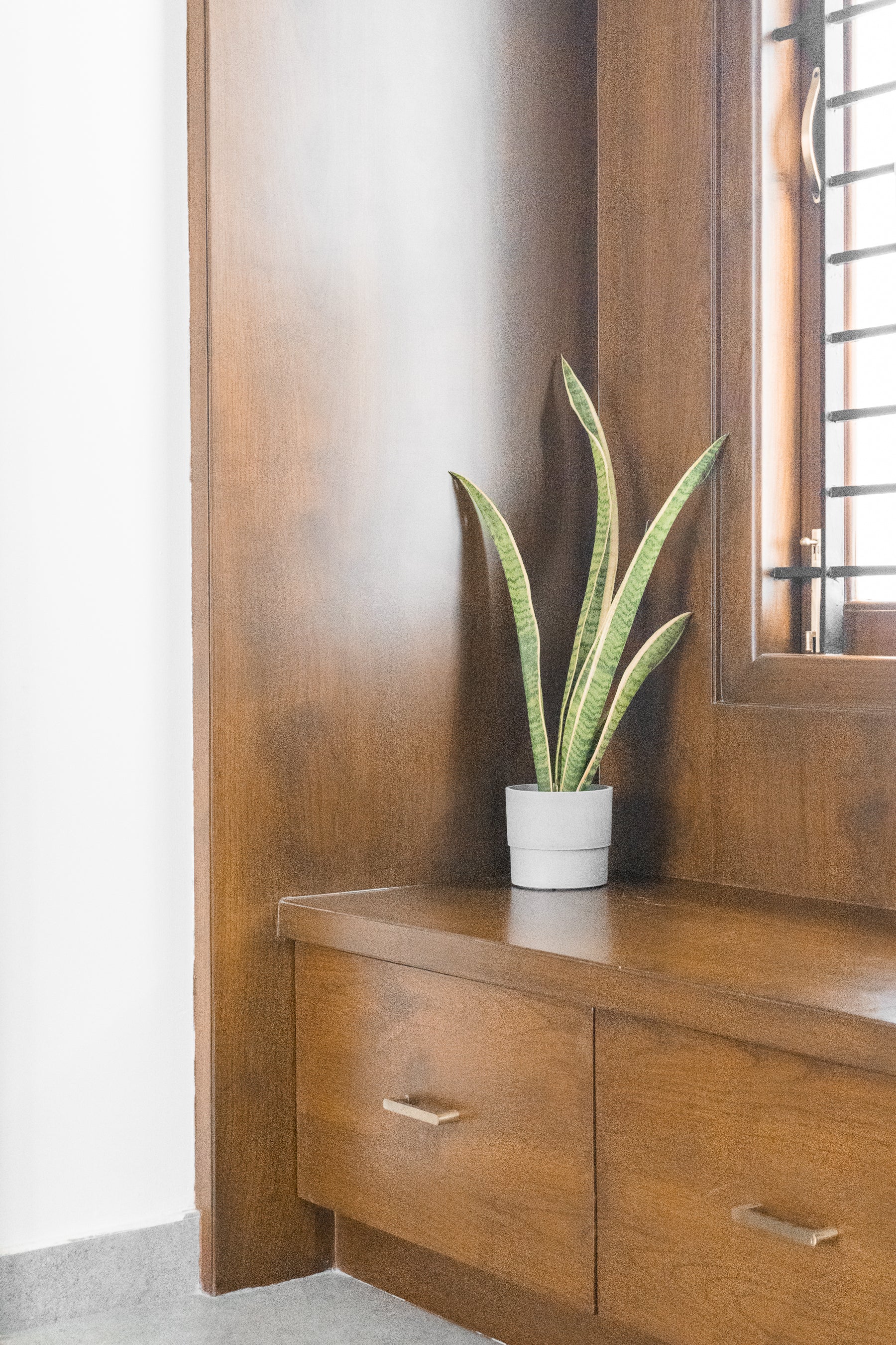 The room features a neutral palette punctuated by warm wood, minimal décor, and refined textures that reflect the project’s larger theme: light as a living element. Large windows invite the outdoors in, while layered lighting adds depth and softness to the interiors. Every detail, from custom wardrobes to minimalist art, is curated to offer clarity, calm, and quiet sophistication.