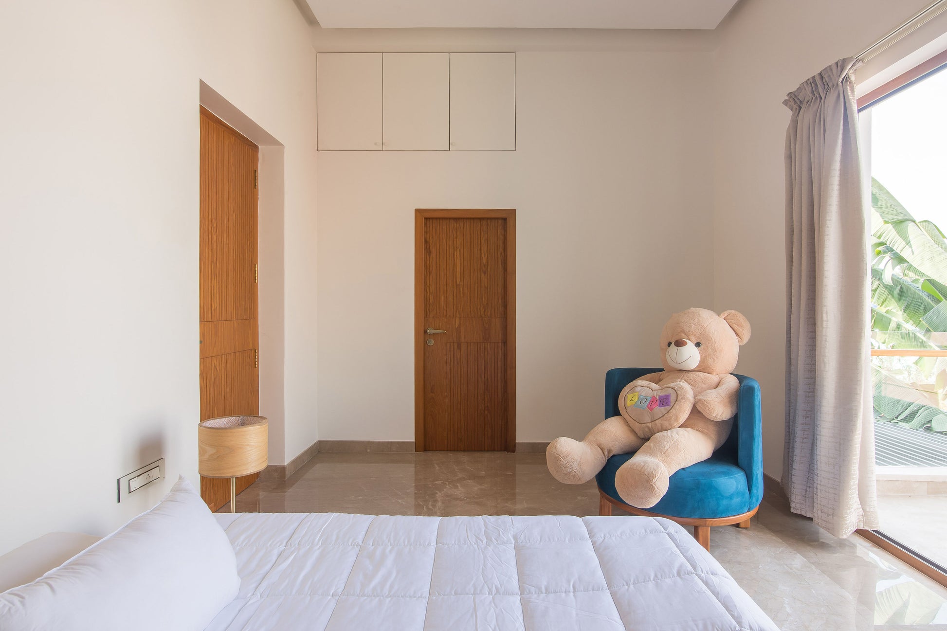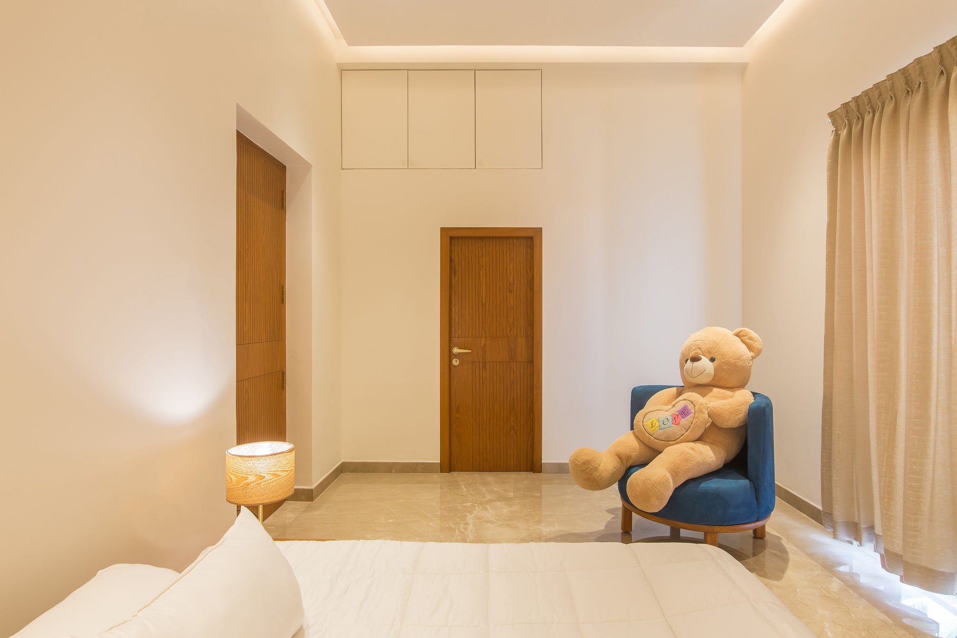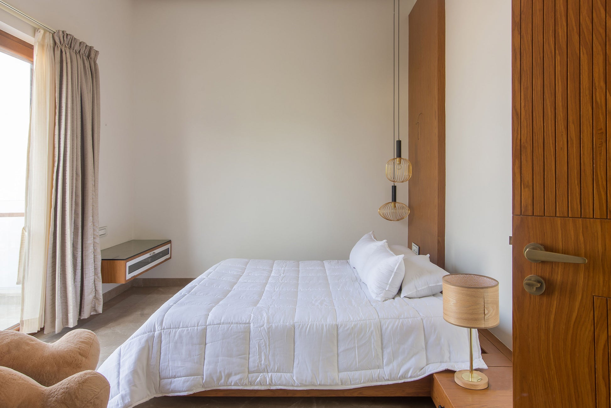 A neutral palette of wood, taupe, and soft textiles creates a calming atmosphere, while subtle accent elements—like wall cladding and brass fixtures—add understated richness. Custom wardrobes and floating nightstands enhance functionality without compromising on aesthetics. This bedroom embodies Mod Faab’s signature: modern living that feels personal, poised, and timeless.